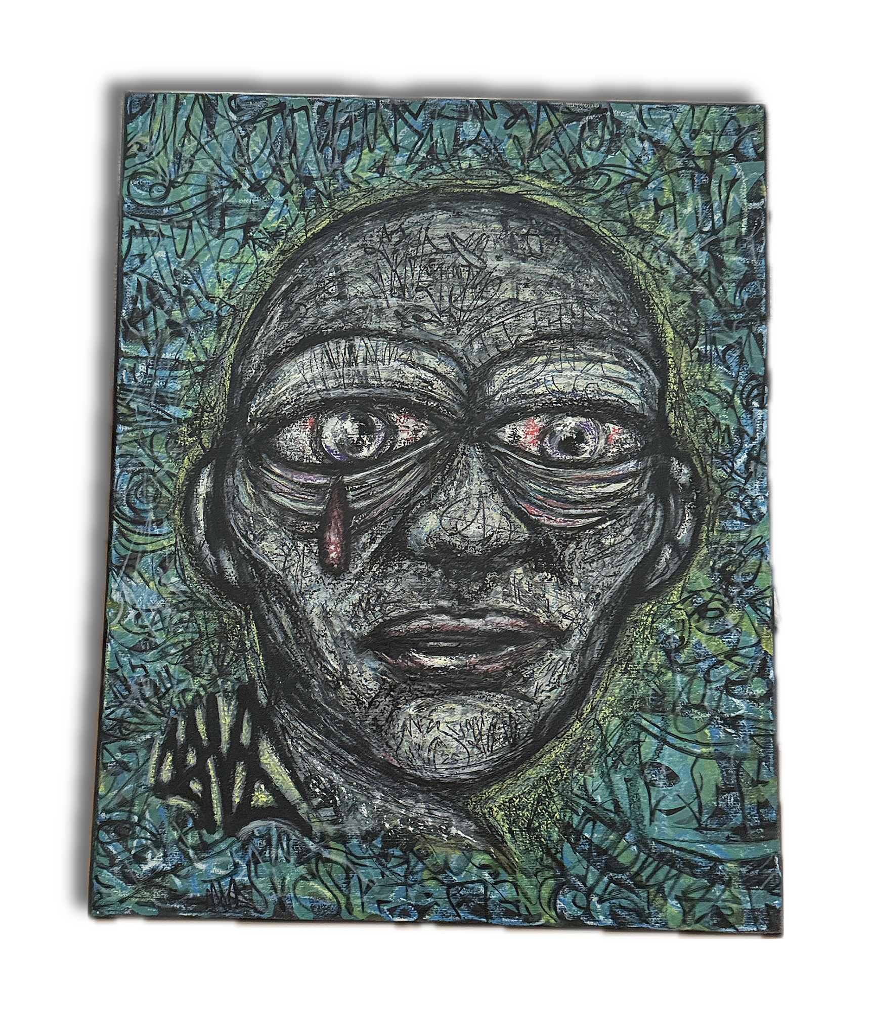 A figure weighed down by the gravity of its own thoughts. Subtle composition and muted tones convey a sense of melancholy and inward reflection, making the figure feel both present and isolated.